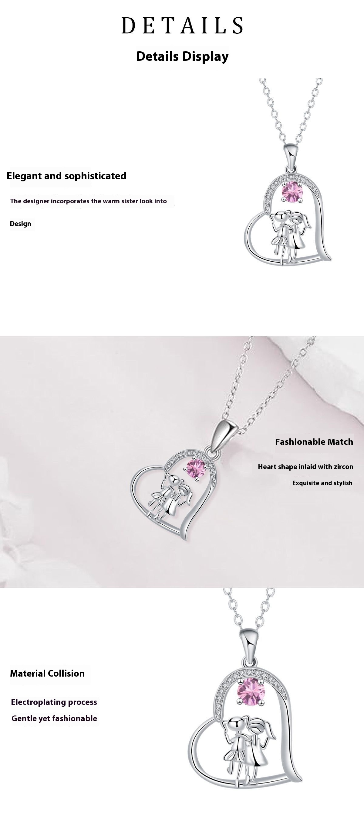 Female Fashion Sisters Heart-shaped Pendant Necklace